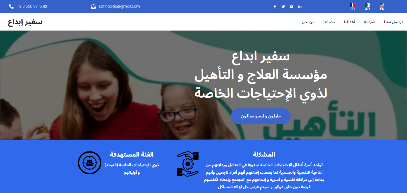 سفير إبداع هي منصة جزائرية تقدم خدمات لفئة مهمة من المجتمع الجزائري وهم ذوي الاحتياجات الخاصة